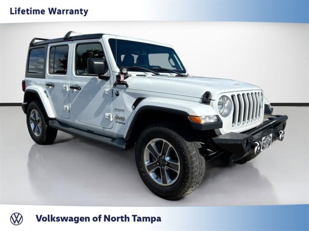 CLEAN CARFAX NO ACCIDENTS REPORTED, 4X4 * FOUR WHEEL DRIVE *, APPLE CARPLAY ** GOOGLE ANDROID AUTO, BLUETOOTH PHONE CONNECTIVITY, REAR VISION BACK-UP CAMERA, ALPINE PREMIUM AUDIO, REMOTE ENGINE START, REMOTE KEYLESS ENTRY, VOLKSWAGEN OF NORTH TAMPA, 1-Year SiriusXM Guardian Trial, 4-Wheel Disc Brakes, 5-Year SiriusXM Traffic Service, 5-Year SiriusXM Travel Link Service, 8.4" Touchscreen Display, ABS brakes, Air Conditioning, Alpine Premium Audio System, Auto-Dimming Rear-View Mirror, Automatic temperature control, Delay-off headlights, Driver door bin, Driver vanity mirror, Dual front impact airbags, Dual front side impact airbags, Dual Top Group, Electronic Infotainment System Group, Electronic Stability Control, Front Center Armrest w/Storage, Front reading lights, Fully automatic headlights, GPS Navigation, HD Radio, Heated door mirrors, Illuminated entry, Integrated roll-over protection, Panic alarm, ParkView Rear Back-Up Camera, Passenger door bin, Passenger vanity mirror, Power door mirrors, Power steering, Power windows, Premium Black Sunrider Soft Top w/Dual Top Group, Quick Order Package 24G, Radio: Uconnect 4C Nav w/8.4" Display, Rear anti-roll bar, Remote keyless entry, Remote Start System, Roadside Assistance & 9-1-1 Call, SiriusXM Traffic Plus, SiriusXM Travel Link, Split folding rear seat, Tachometer, Telescoping steering wheel, Tilt steering wheel, Trip computer, Variably intermittent wipers, Voltmeter.